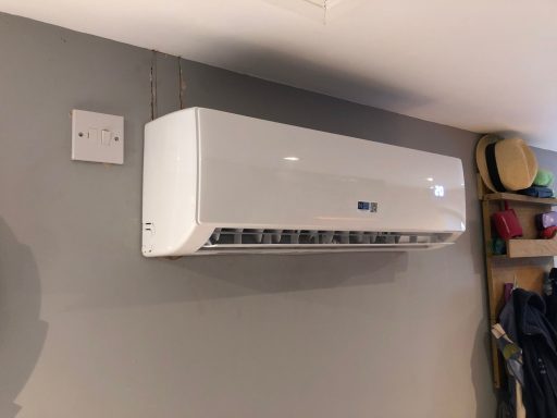 Here we installed a 3.5kW system into our customers utility room to regulate the temperature to keep their dog cool in the summer and warm in the winter. With the added advantage to be able to use it as a dehumidifier to dry laundry.